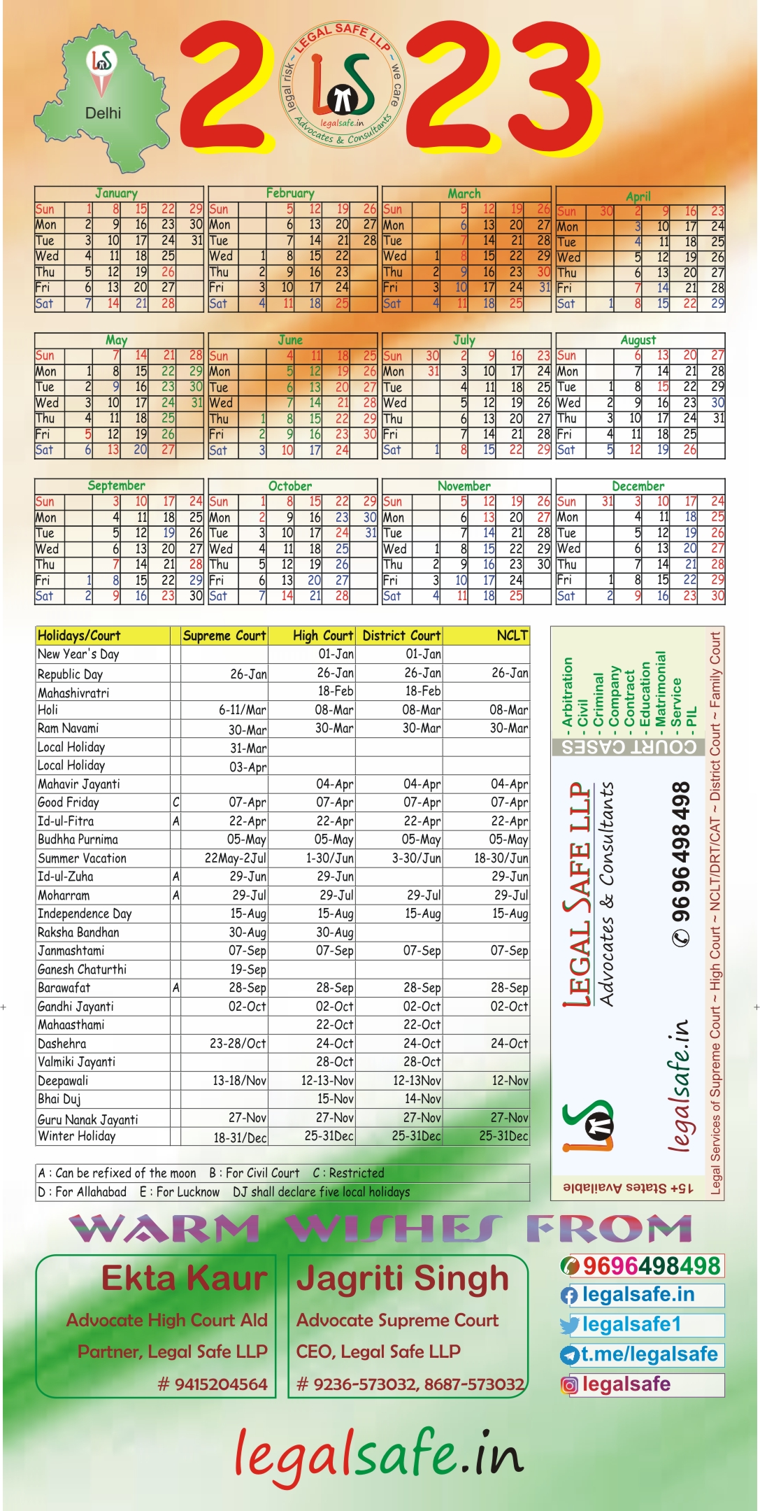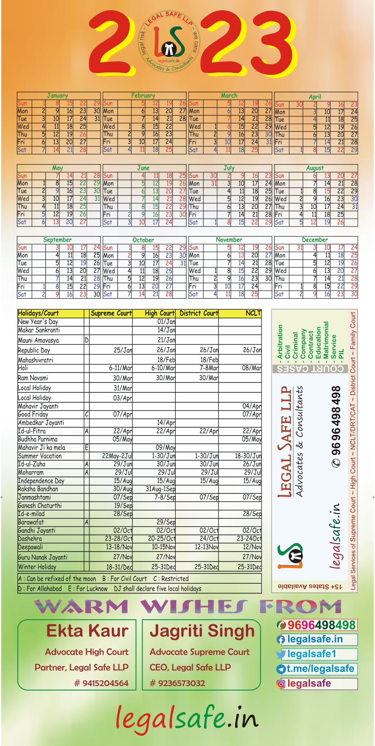 Court Calendar 2023 (Supreme Court, High Court, District Court, NCLT)